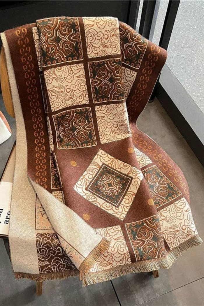 A soft, cashmere-like scarf patterned with a paisley patchwork design for an elevated everyday layer. The Cashmere Like Paisley Patch Scarf drapes smoothly and finishes with short fringe at the ends for a classic look. KYCOZY crafted this piece to add warmth and refined visual interest to coats and sweaters. It’s lightweight enough for transitional seasons yet cozy when layered in colder weather.